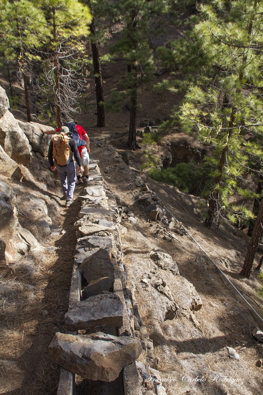 La carretera se abandona por la derecha al llegar a El Turrón, uno de los núcleos de población que forman parte de este caserío. En este punto comienza el sendero PR TF-59 con una calzada empedrada en fuerte desnivel. El camino serpentea ladera arriba. Esta es la parte más exigente de la presente ruta.